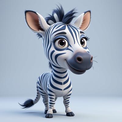 симпатичный антропоморфный персонаж-зебра, Зебра Стрипс, талисман агентства по подготовке спикеров. У зебры элегантные, гладкие полосы, чередующиеся голубого и чистого белого цветов. Дружелюбное, умное и уверенное выражение. Стиль современной векторной графики, 2D-персонаж, четкие линии, профессиональный и привлекательный. На чистом фоне. Зебра должна быть не прям милая.