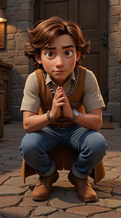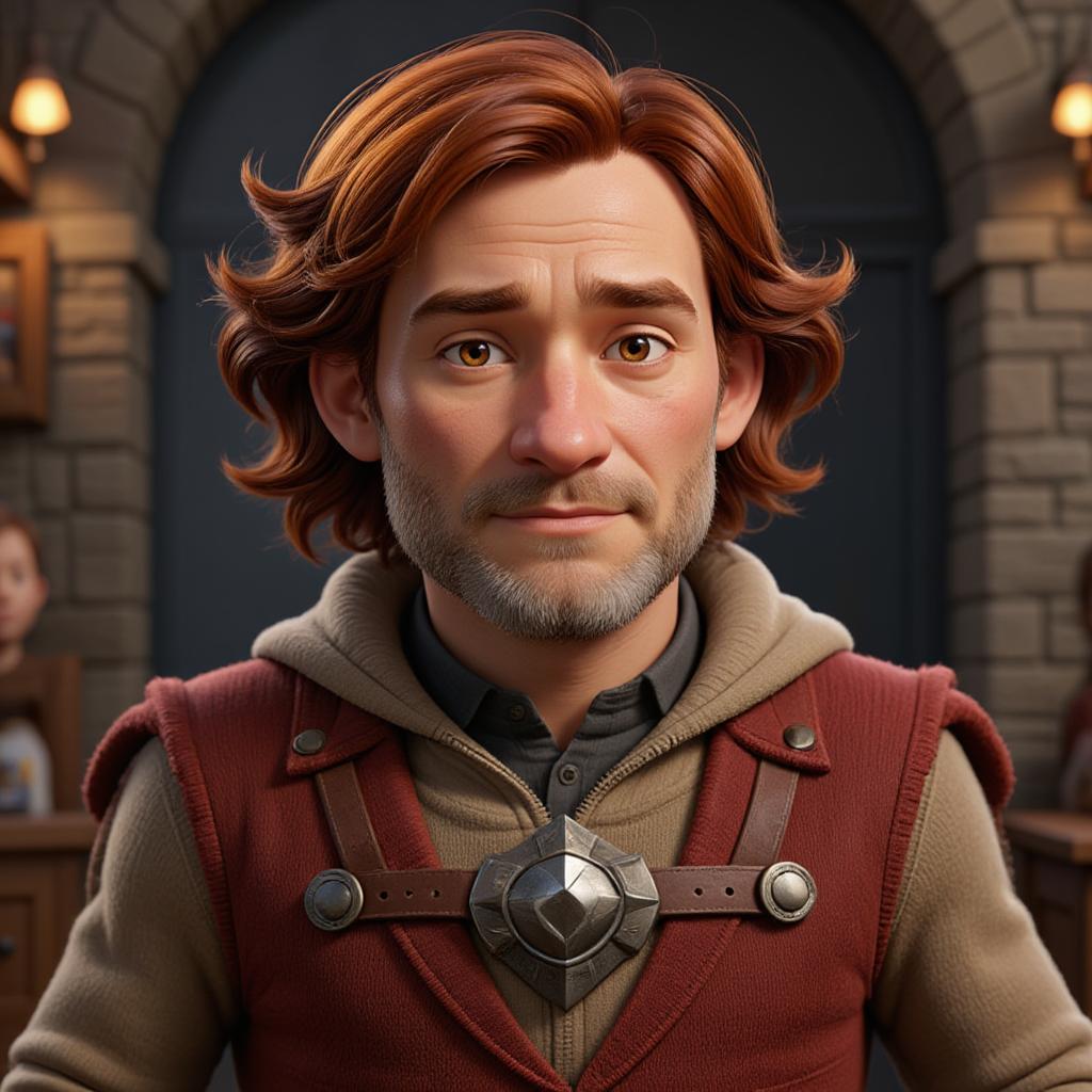 A Sims 4 character. An elderly man with bright amber eyes and dark red hair. He has an old, Northern European sensibility, exuding both strength and nobility. The name of a man from a time when honor was worth more than power. He's not sad; he's stern, noble, steadfast, and somewhat warlike. He has fair skin. He's an aristocrat, a duke. He doesn't look tired, has no large wrinkles, and is well-preserved. He should look just like a Sims 4 character, ideally dressed in aristocratic clothing.