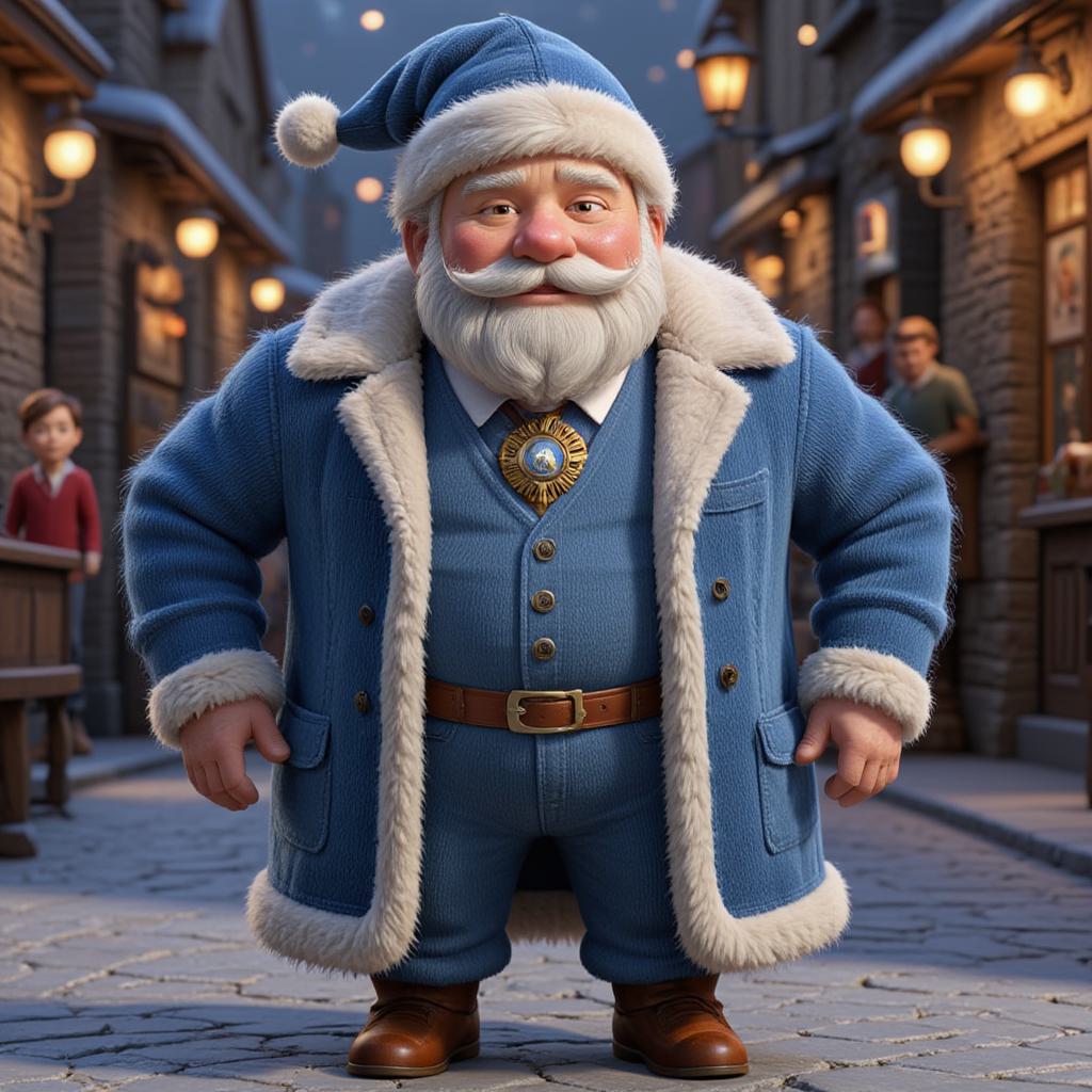 Снегурочка одета в Длинное платье до пола голубого цвета,рукава длинные, расширяющиеся к запястью, Платье украшено белым меховым подолом и такими же манжетами на рукавах. Поверх платья надета короткая белая шубка. На голове — кокошник или меховая шапочка, белого цвета с узором, Волосы светлые заплетены в косы, , Дед Мороз в красной длинной шубк до самой земли красного цвета. Белая меховая отделка по подолу, воротнику и манжетам.Пояс — широкий, часто с узором, подпоясывает шубу.Шапка — такая же, как шуба, с меховой оторочкой.Варежки тёплые,меховые.Сапоги белые, В руках длинный посох и мешок красный . Длинная белая борода,