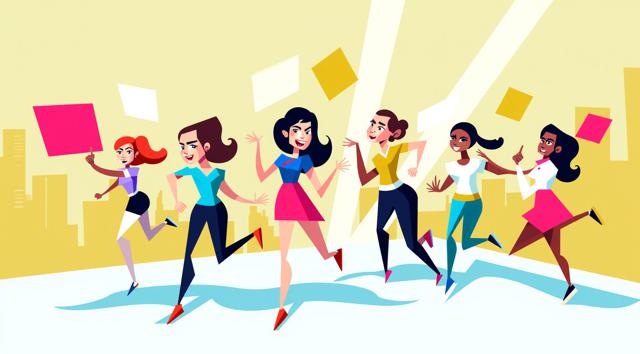 Создай шесть мультяшных женских персонажей в едином стиле: яркий поп-арт с динамичными позами, высокой экспрессией и стилистикой, вдохновлённой аниме и современной графической иллюстрацией. Каждый персонаж — метафора типа менеджера по продажам рекламы: 1) Скорость — бегущая с крыльями из баннеров, 2) Связь — с проводами и Wi-Fi-сигналами, 3) Клиент-магнит — притягивает монеты, 4) Стратег — летит на диаграммах, 5) Убеждатель — голосовые волны превращаются в цепи, 6) Рост — растёт как растение с графиками. Стиль: чёткие линии, насыщенные цвета, акцент на движение и энергию. Фон — белый. Все персонажи должны быть визуально согласованы по пропорциям, цветовой палитре и уровню детализации