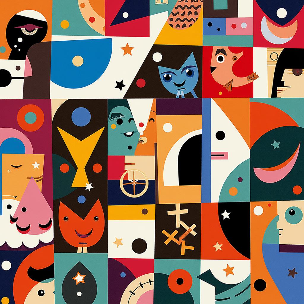 Эта концепция представляет собой МНОГО ДЕТАЛЬНЫЙ захватывающий визуальный конфликт между строгой геометрией кубизма и стихийной энергией экспрессионизма. Картина превращается в живой, пульсирующий рельеф. Центр композиции представляет собой сложнейший кубистический лабиринт, где пространство разбито на сотни маленьких неопределенных фрагментов. Палитра взрывается многоцветностью. Глубокий ультрамарин соседствует с открытой охрой, а неоновые вспышки розового переплетаются с классической терракотой. За счет разной толщины масляных мазков свет падает на картину неравномерно, заставляя одни фрагменты сиять, а другие — уходить в глубокую бархатистую тень., ,