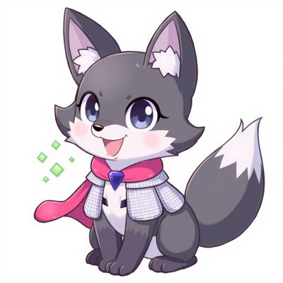 Яркий, энергичный лис-маскот с шерстью в цветах мягкий серый и фуксия, белыми акцентами на ушах и кончике пушистого хвоста, на котором есть цифровой пиксельный узор. У лиса большие внимательные и умные глаза со светящимся ободком, игриво-мудрая улыбка. На шее лёгкий инженерный плащ с пиксельным рисунком, на боку маленькая сумка с инструментами и гаджетами. Современный, динамичный, находчивый образ, воплощающий креативность, надёжность и командную работу. Полная фигура на чистом белом фоне.