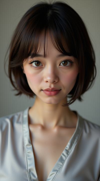"Женщина-андроид, выглядящая как милая, молодая девушка с именем София Александровна Смирнова. У неё умные, но добрые глаза, мягкое освещение, короткие или средней длины волосы, современный, элегантный, но неброский стиль. Атмосфера: спокойствие и мудрость. Качество: фотореалистичное, высокий уровень детализации.",