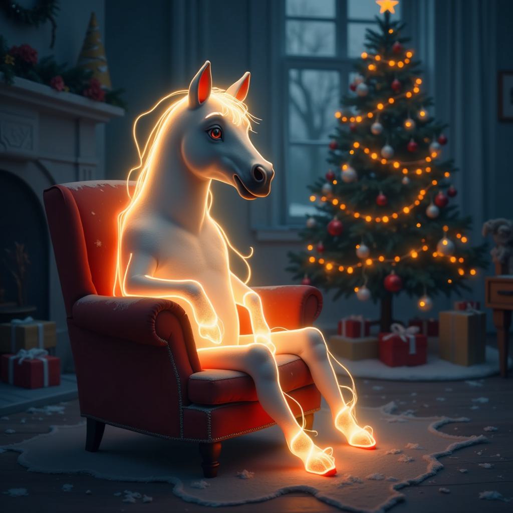 Лошадь должна быть динамичной и энергичной, с яркими огненными оттенками — красным, оранжевым и желтым. Добавьте элементы новогоднего декора, такие как снежинки, елочные игрушки и гирлянды, чтобы создать атмосферу праздника. Фон может быть темным, чтобы огненные цвета лошади выделялись еще больше. Принт должен быть ярким, позитивным и вдохновляющим, идеально подходящим для новогоднего настроения.