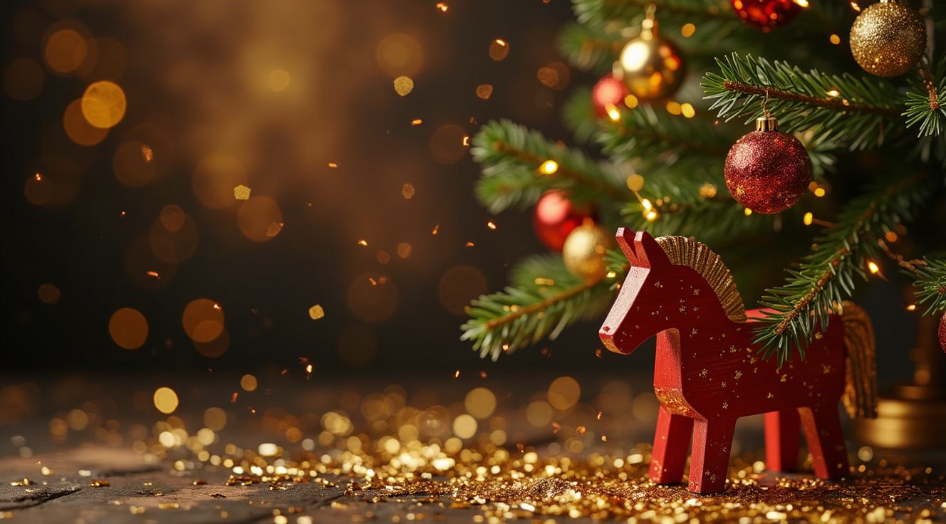 Лошадь должна быть динамичной и энергичной, с яркими огненными оттенками — красным, оранжевым и желтым. Добавьте элементы новогоднего декора, такие как снежинки, елочные игрушки и гирлянды, чтобы создать атмосферу праздника. Фон может быть темным, чтобы огненные цвета лошади выделялись еще больше. Принт должен быть ярким, позитивным и вдохновляющим, идеально подходящим для новогоднего настроения.