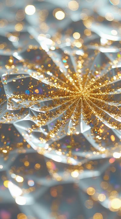 «Создай изображение поверхности бриллианта с следующими параметрами:, , множество острых граней, формирующих сложный геометрический узор;, реалистичные отражения и преломления света, с радужными бликами на некоторых гранях;, основная цветовая гамма: белый, серебристый, серый;, добавь лёгкие градиенты и полупрозрачность для усиления эффекта объёма;, композиция должна быть бесшовной, подходящей для использования в качестве фона;, разрешение — высокое, с чёткой детализацией каждой грани.»