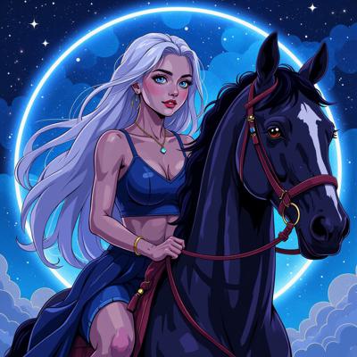 Лошадь должна быть динамичной и энергичной, с яркими огненными оттенками — красным, оранжевым и желтым. Добавьте элементы новогоднего декора, такие как снежинки, елочные игрушки и гирлянды, чтобы создать атмосферу праздника. Фон может быть темным, чтобы огненные цвета лошади выделялись еще больше. Принт должен быть ярким, позитивным и вдохновляющим, идеально подходящим для новогоднего настроения.