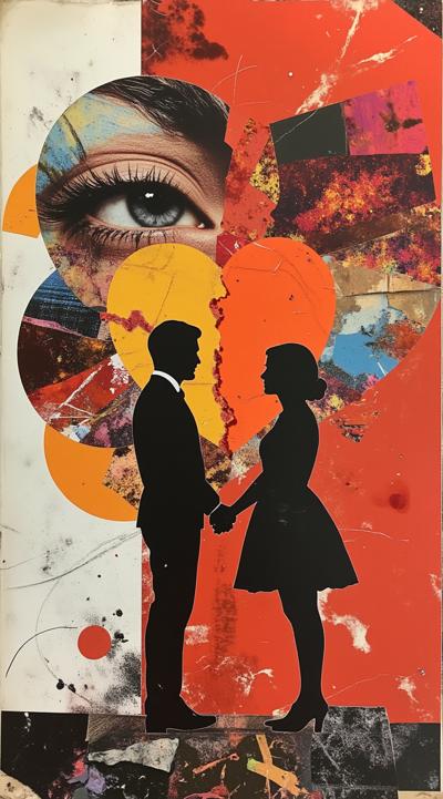 "Создать красочное и драматичное изображение для песни "Dino MC 47 И Нюша - Я Тебя Любила". Использовать контрастные цвета: красный, черный, белый. Визуализировать страсть, боль и потерю. Изобразить разбитое сердце, слезы, силуэты людей, отвернувшихся друг от друга. Добавить элементы, отражающие конфликт и расставание."