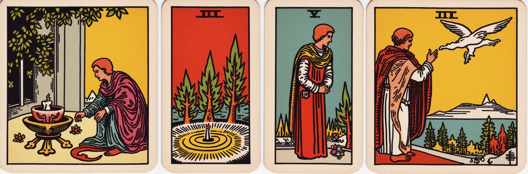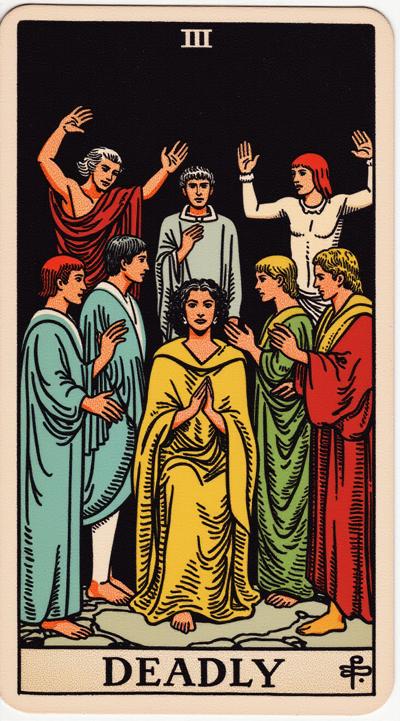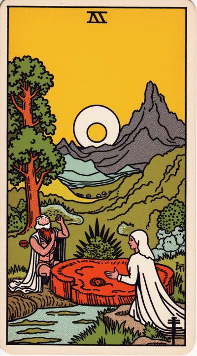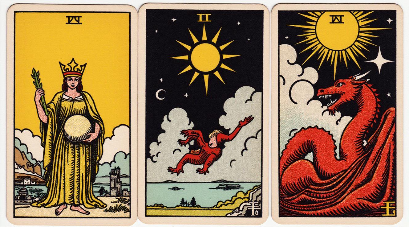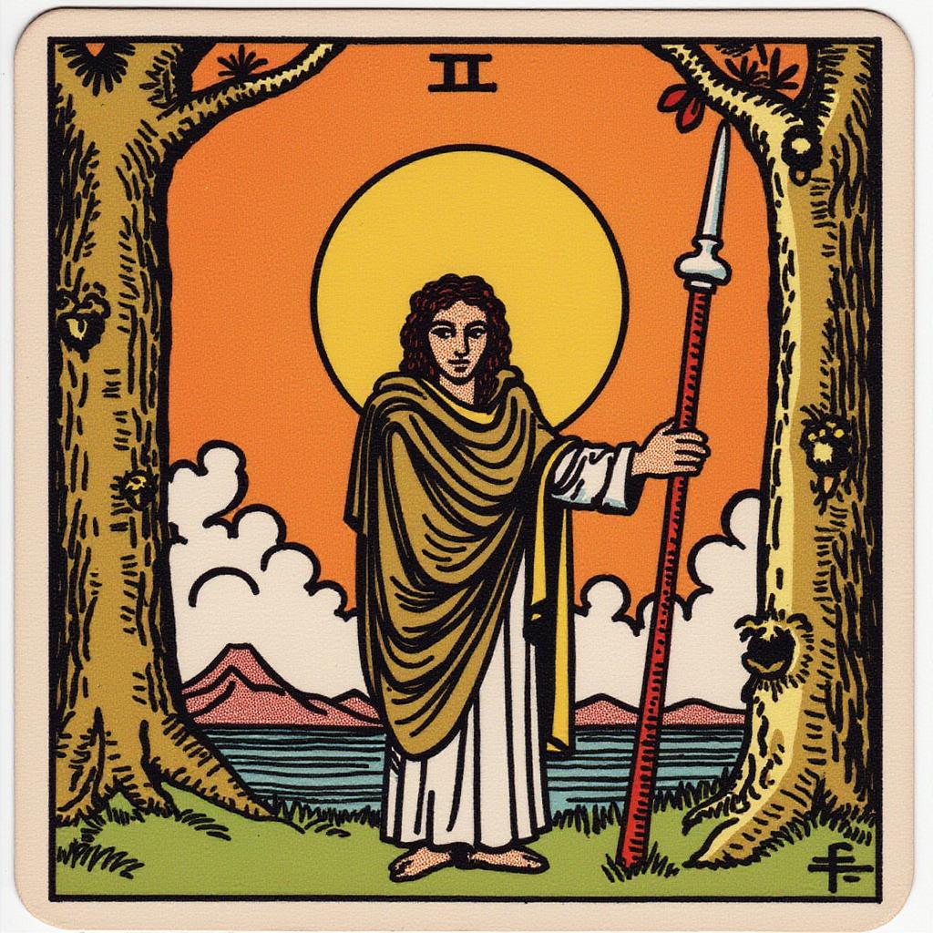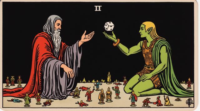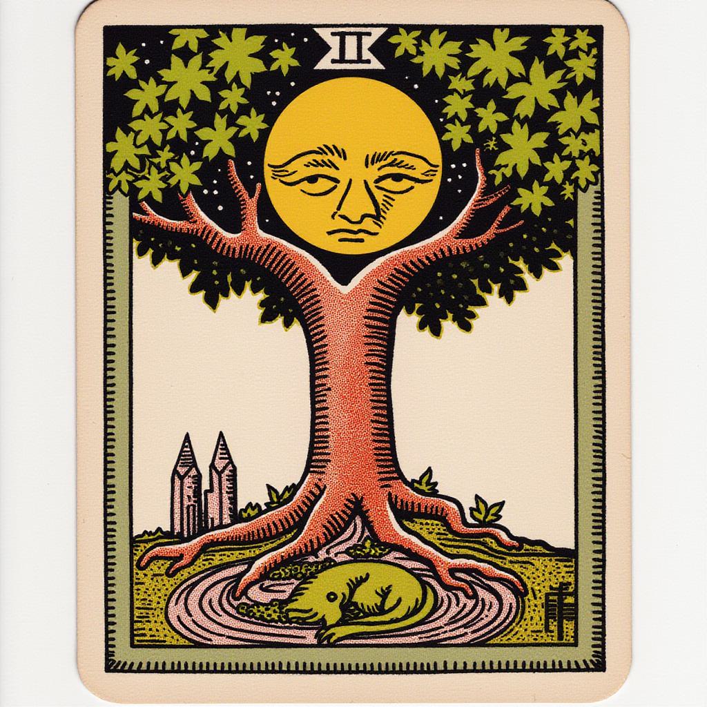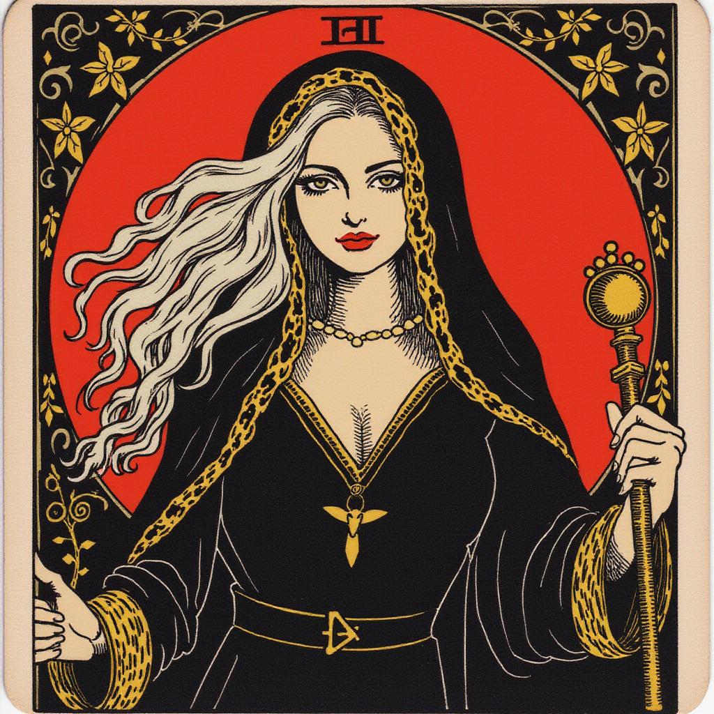 A mystical tarot card illustration, digital painting, hand-drawn style, painted with graphics tablet, expressive brush strokes, painterly shading, soft and textured brushwork, highly detailed character or symbolic scene, magical and enigmatic atmosphere, warm and ethereal lighting, subtle canvas texture, slightly rough edges, rich and harmonious colors, intricate patterns and symbolic elements, dynamic composition with central focus, soft shadows and highlights, storybook and fantasy illustration style, professional digital artist feel, hand-painted look, mysterious and enchanting mood, suitable for tarot readings,