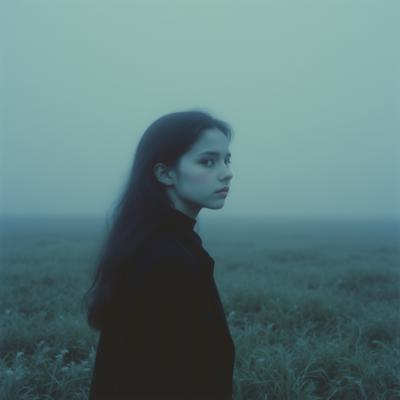 Атмосферное холодные тона фото девушки со спины, одна в ночном городе, выдержано в темных тонах. На изображении девушка стоит на пустынной улице или сквозь витрины современных зданий просачивается тусклый свет, создавая игру теней и мягкого свечения. Мягкий свет освещает ее фигуру, подчеркивая контуры и создавая загадочную атмосферу. В небе виднеются редкие звезды или легкий туман, добавляющий образу драматичности и таинственности.