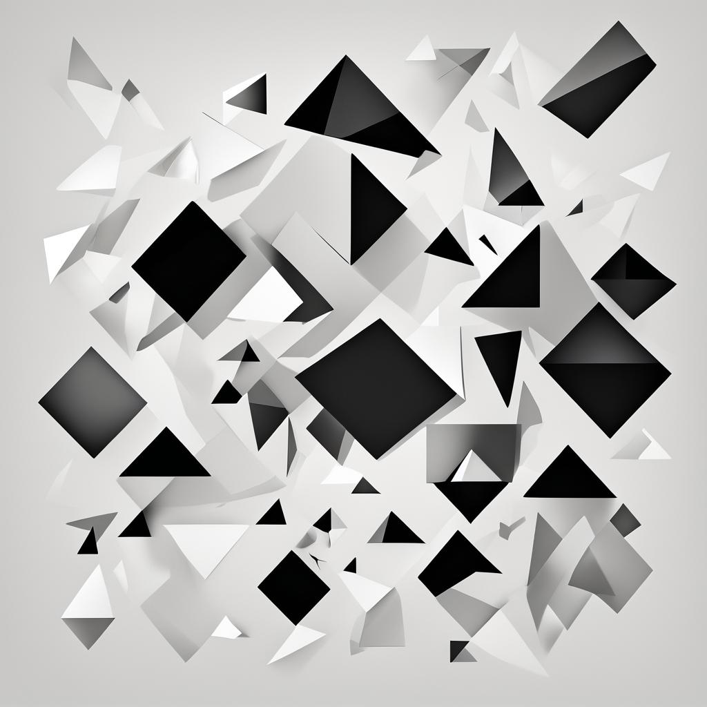 абстрактные геометрический фигуры, 1/4 от размера квадрата, большие, плоские, не 3Д, без теней, без градиента , черно белые, прямоугольники, треугольники