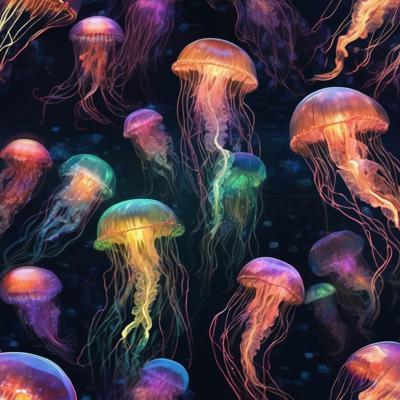 разноцветные медузы светятся в темной морской воде
