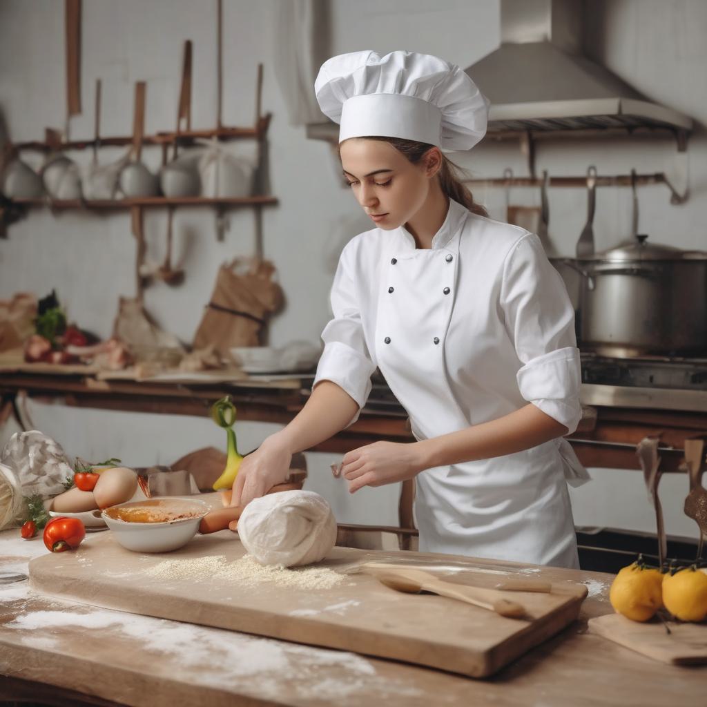 Нереально красивая девушка в поворском костюме готовит полуфабрикаты