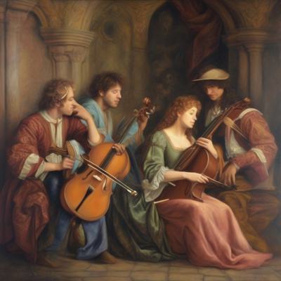 Музыканты картина в стиле ренессанс маслом, пастельные тона