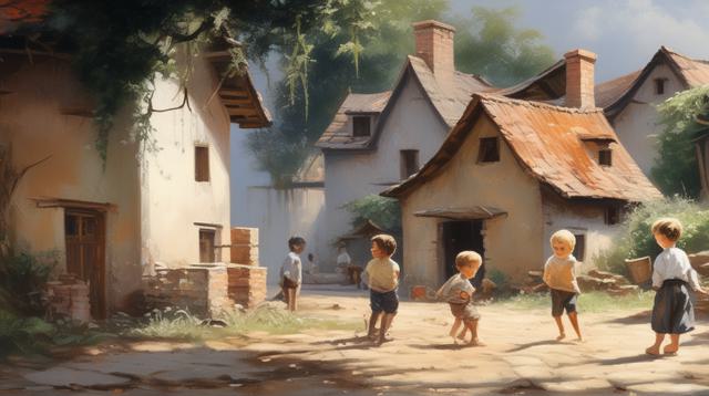 старая деревня, дети играют на улице