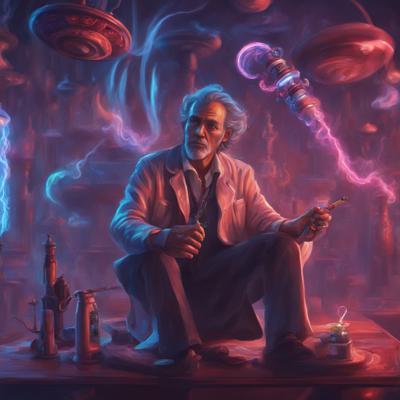 Курящий кальян человек в 2070 году, вокруг летающие тарелки , неон, реализм 3D . +Уточнение: Поставить рядом кальян