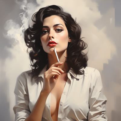 Красивая брюнетка за 30, держащая сигарету в руках