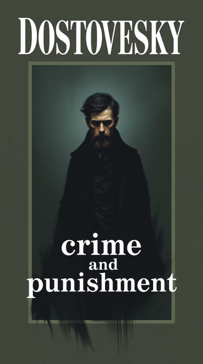 обложка для книги Достоевского в виде иллюстрации 2д к книге "преступление и наказание", должно быть название произведения и главный герой, в мрачных тонах, ,