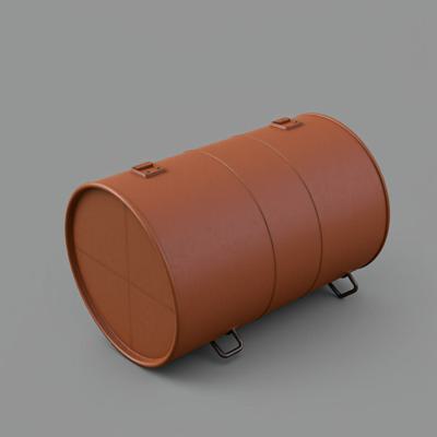 столитровая стальная бочка цвета хаки, лежит на боку, на корпусе прикреплены 8 одинаковых ручек-скоб
