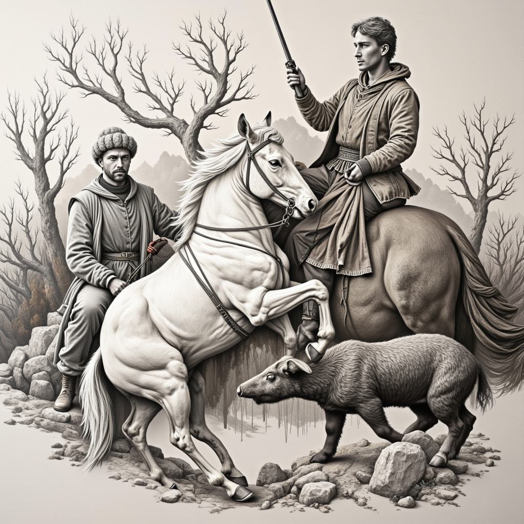 АБСТРАКЦИЯ В данной работе исследуется абстрактная живопись, созданная в стиле картин Roberto Ferri, которая демонстрирует КОМПОЗИЦИЮ МНОГО ПЕРСОНАЖНОЙ СРЕДНЕВЕКОВОЙ ОХОТЫ В ВИДЕ переплетения В БЕЛО-МРАМОРНОЙ ГИППЕРРЕАЛИСТИЧНОЙ ВЕКТОРНОЙ ГРАФИКИ СРЕДНЕВЕКОВЫХ ОХОТНИКОВ-ДВОРЯН, ЕГЕРЕЙ И ОЛЕНЕЙ, КАБАНОВ И ФАЗАНОВ, фигур и объектов,, намекая на борьбу с ЖЕНСКИМ подсознанием сюжета. Работы представлены в сюрреалистической перспективе, иллюстрируя ЛОШАДИНЫЙ полет, вызванный генерацией подсознательной сублимации сознания, в реконструкцию переосознания реальности в ином измерении. СЕРАЯ, КРЕМОВАЯ , МРАМОРНАЯ, СВЕТЛО ТЕРРАКОТОВАЯ, ОХРОВАЯ, ОЛИВКОВАЯ ПАЛИТРЫ