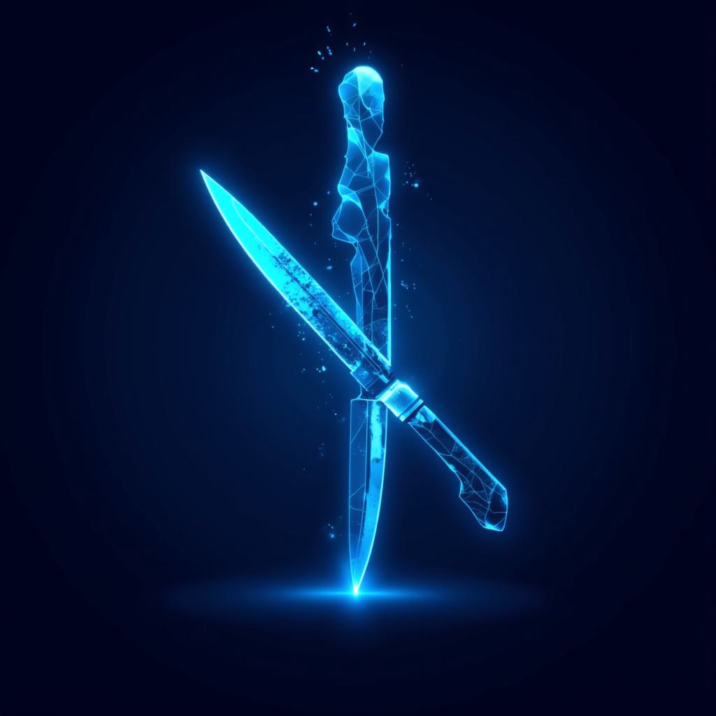 Prompt: "Яркий аватар для YouTube канала 'CarverByte', вдохновлён киберпанк-стилем с резкими неоновыми акцентами в синем и электрическом голубом, стилизованный роботизированный значок, сочетающий силуэт ножа для резьбы с символом цифрового байта, глянцевый градиентный фон, высокий контраст, лаконичный и читаемый в маленьких размерах, квадрат 1:1."