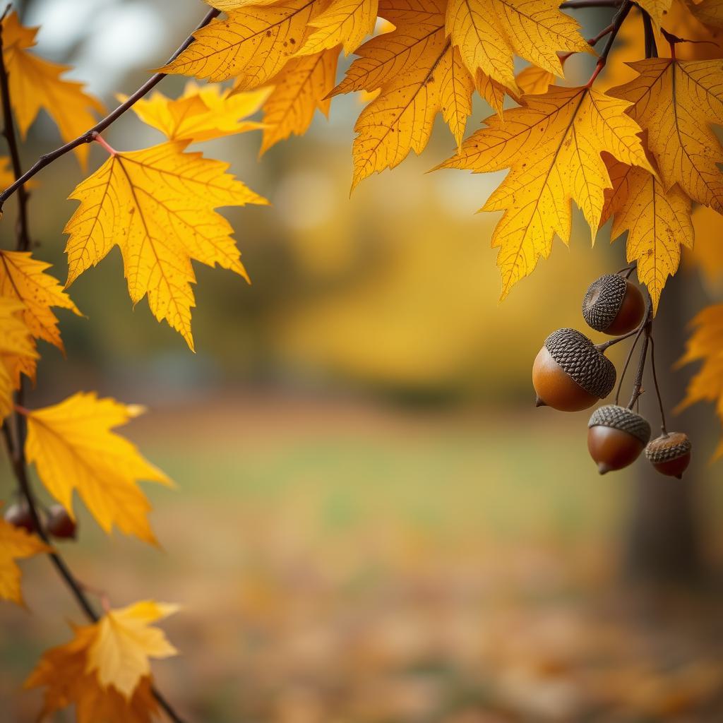 Осенняя картинка с желтыми листьями и желудями. Картинка для текста