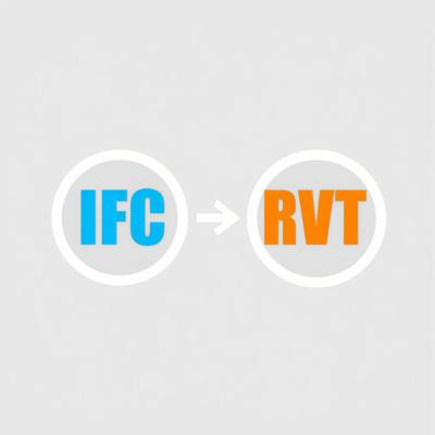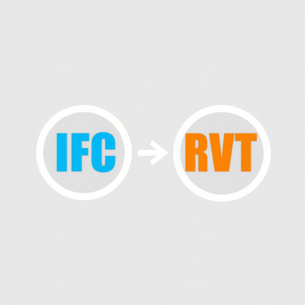 минималистичная иконка, плоский дизайн, прозрачный фон. Два реалистчных круглых воздуховода, слева на воздухводе оранжевый текст IFC, справа на воздухводе голубой текст RVT, между ними стрелка направленная от текста IFC к тексту RVT. Монохромно, белый или серый цвет на прозрачном фоне. Четкие геометрические элементы на изображении