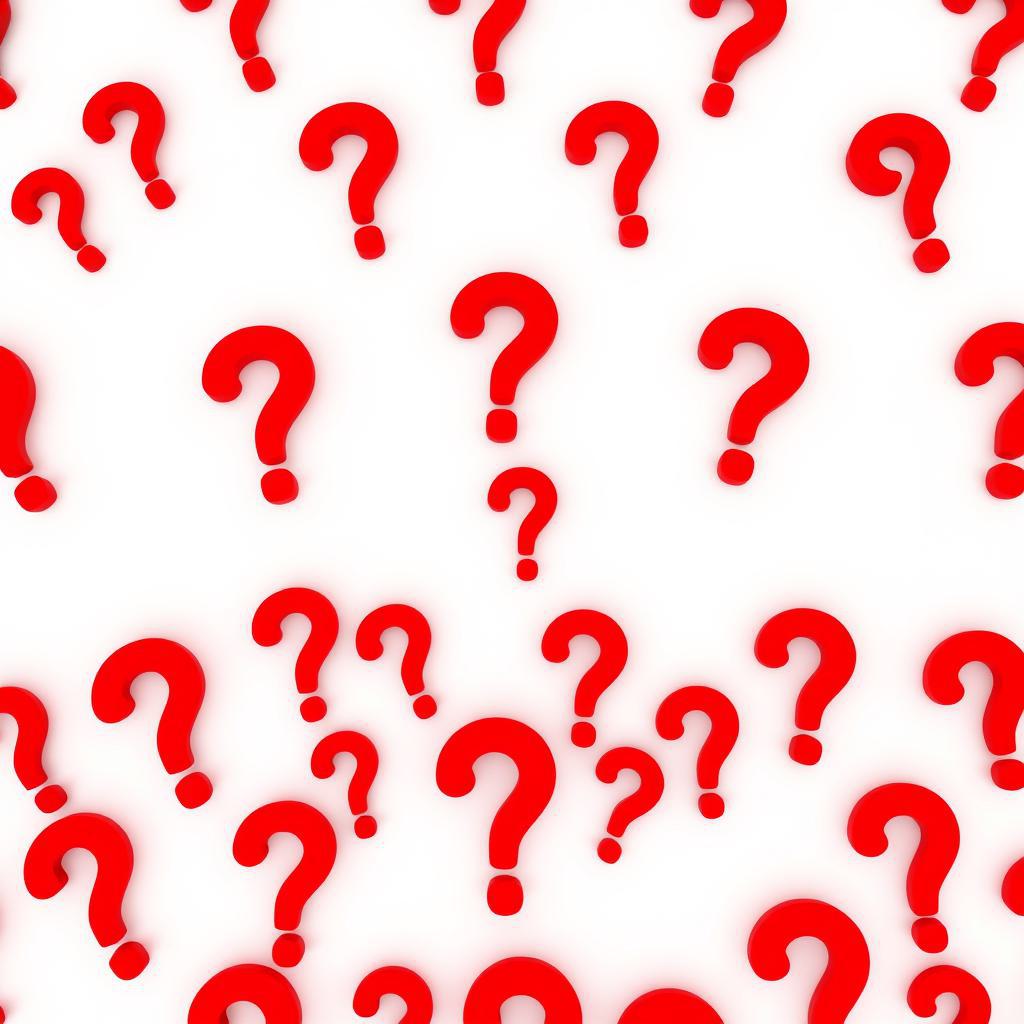 Много красных больших объемных вопросительных знаков на белом фоне