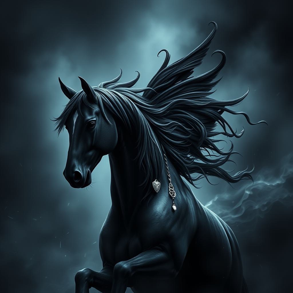 черная лошадь в стиле dark fantasy,