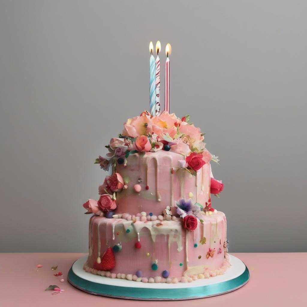 Изобрази витрину для кондитерской в центре города. Над стеклом витрины расположен тканевый нежно-розовый навес в белую полоску. Витрина украшена весенними цветами, нарциссами, тюльпанами, лианами в розовых, желтых и фиолетовых тонах. На стекле витрины изображен логотип кондитерской, а за стеклом стоит небольшой стеллаж с муляжами сезонных тортов, десертов и брендированных коробок.