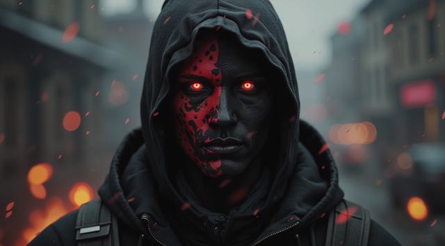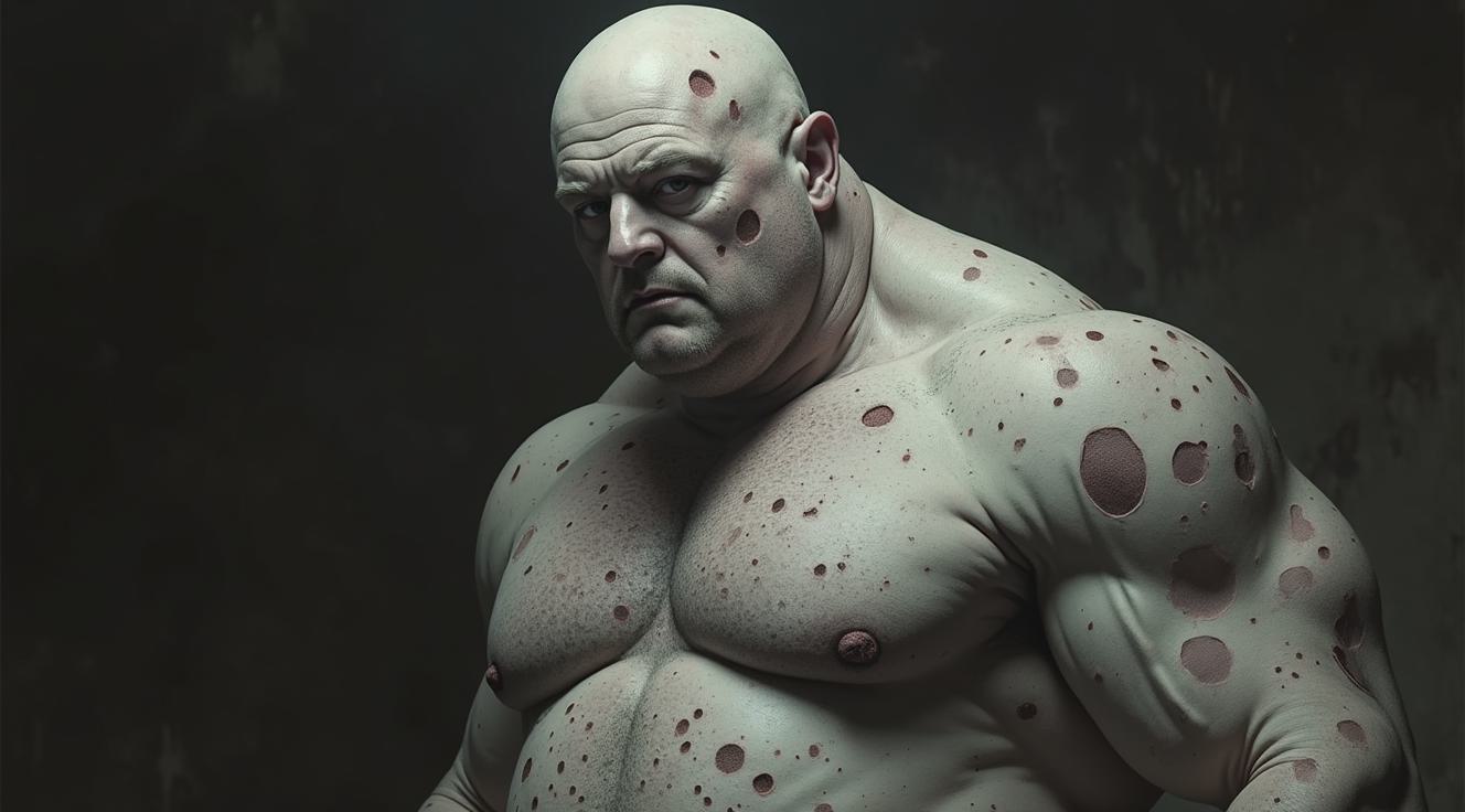Мужчина, высокий и плотно сложенный, толстый, но не жирный, кожа рябая и бледная, но цвет кожи был не просто белым, а отдавал каким-то серым, может быть, слегка пыльным, и, конечно, вся кожа была покрыта рябью и сыпью, глаза среднего размера. Мужчина был лыс, руки его были мощны, а глаза были черны, полностью черны, будто белков и не было, на массивном теле в обтяжку тянулся чёрный халат, отдалённо напоминающий рясу, подпоясывался же халат прочной бичевкою. Мужчина в чёрном халате!