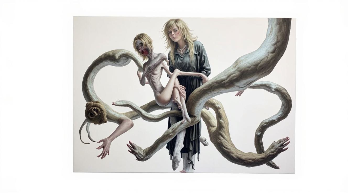 Абстрактная ЖИВОПИСЬ НАРИСОВАННАЯ В СТИЛЕ КАРТИН Roberto Ferri показывающая ПЕРЕПЛЕТЕНИЕ НЕОПРЕДЕЛЕННЫХ ФИГУР И ОБЕКТОВ И намек на борьбу с подсознанием сюжета , представленный в сюрреалистической перспективы ПОЛЕТ ВЫЗВАННЫЙ ГЕНЕРАЦИЕЙ ПОДСОЗНАТЕЛЬНОЙ СУБЛЕМАЦИИ СОЗНАНИЯ В РЕКОНСТУКЦИЮ ПЕРЕОСОЗНАНИЯ РЕАЛЬНОСТИ В ИНОМ ИЗМЕРЕНИИ,