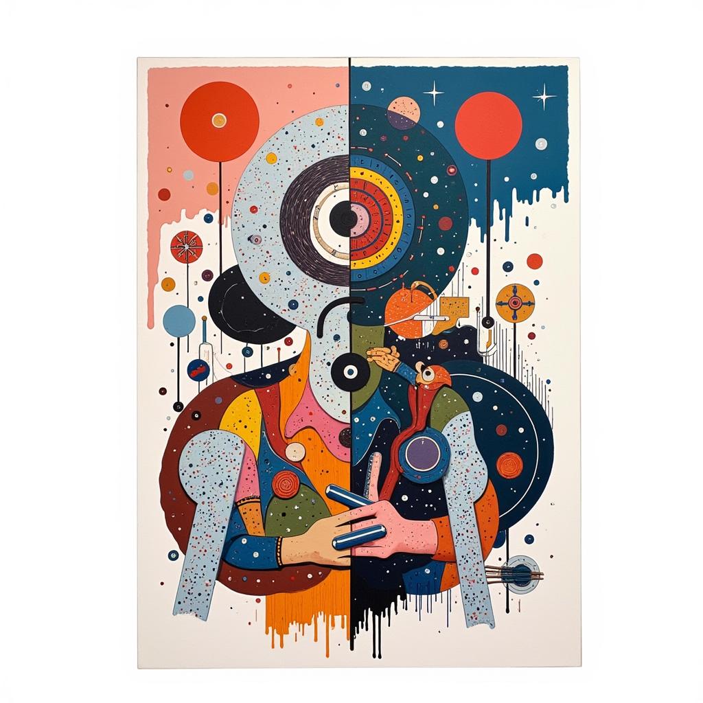 В данной работе исследуется абстрактная живопись, созданная в стиле картин Roberto Ferri, которая демонстрирует переплетение неопределенных фигур и объектов, намекая на борьбу с подсознанием сюжета. Работы представлены в сюрреалистической перспективе, иллюстрируя полет, вызванный генерацией подсознательной сублимации сознания, в реконструкцию переосознания реальности в ином измерении.