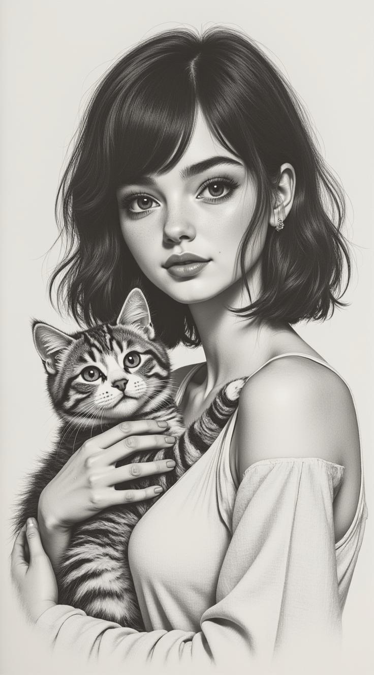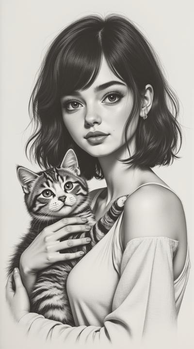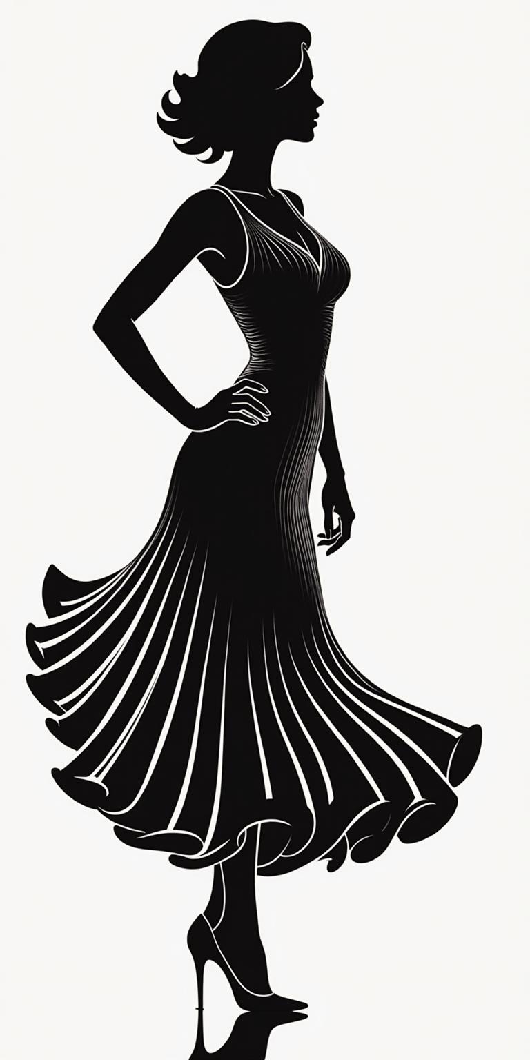 An exquisite kinetic stencil design, an elegant female silhouette in a flowing couture dress and stilettos, a refined pose with light movement, expressive curved parallel lines covering the entire composition, a smooth radial transition from the figure to the edges, architectural folds gently repeating the curves of the body, a dress with barely noticeable movement, an artistic swirl pattern that occupies the entire space, variations of calligraphic lines, luxurious fashion illustration