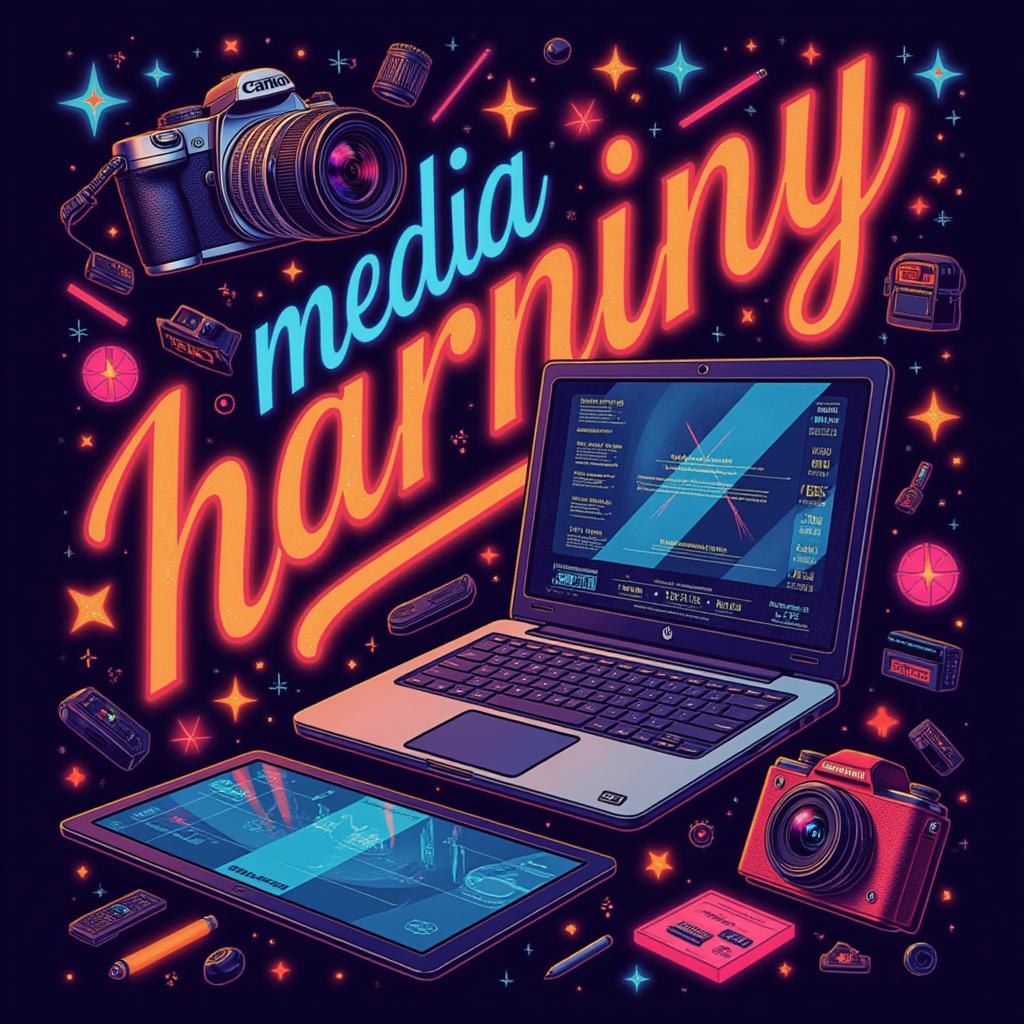 Создайте яркую афишу для медиа академии, используя неоновые цвета для динамичного дизайна. Включите элементы, связанные с медиа-образованием: фотоаппараты, ноутбуки и графические планшеты. Текст должен быть читаемым и информативным, отражая креативность и вдохновение. Экспериментируйте с формами и композицией, чтобы сделать афишу уникальной и запоминающейся. Цель — привлечь внимание потенциальных студентов и создать атмосферу творчества.