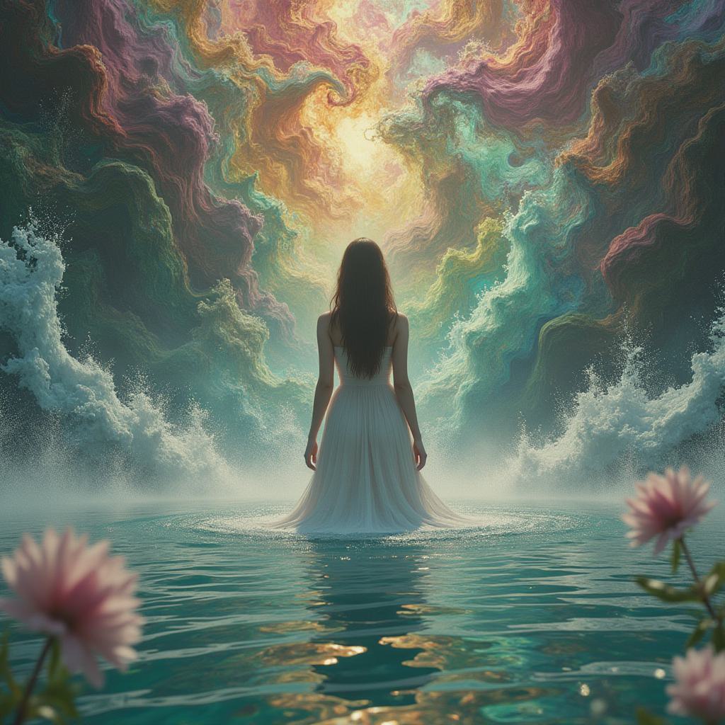 фантазия об альтернативной вселенной, жидкий мраморный энтропий, белый фрактальный фон вселенной, хлорофилл, брызги воды, молекулярный, прекрасный футуристический. Модель, креативность, стиль; гармония стилей: Илен Мейер, Джим Уоррен, Николай Кочергин. Красочная фантасмагория, шедевр; научно-фантастическая феерия; динамичные позы. Гиперреализм, выразительный, ослепительный, необыкновенный.