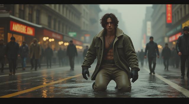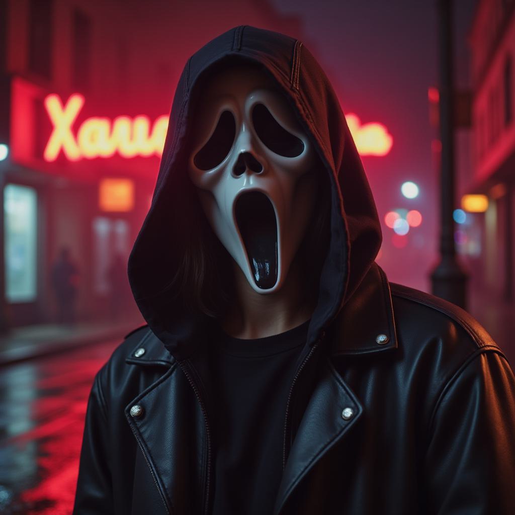 постапокалиптическое время, снизу трава зеленовато серая, на заднем фоне урбанистика с граффити и серо красным закатом, огни неона сверкают в тумане, на траве лежит шлем , на боку, от оранжевого скафандра с разбитым стеклом, на стекле огни неона, внутри шлема череп, на траве перед шлемом лежит боком рука скелета сжимающая средний палец показывая фак, цифровое изображение высокое качество, киберпанк, много неона, граффити, тумана, разбитых домов, стиль гранж