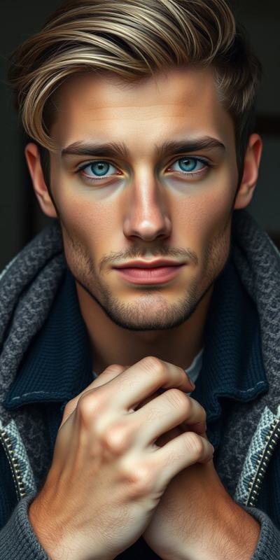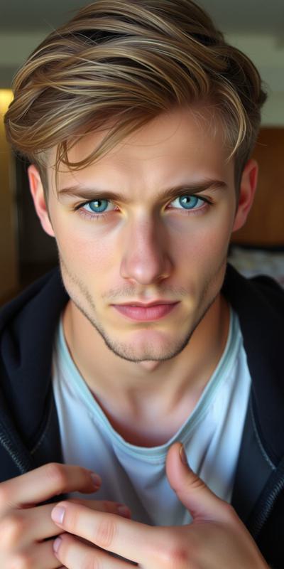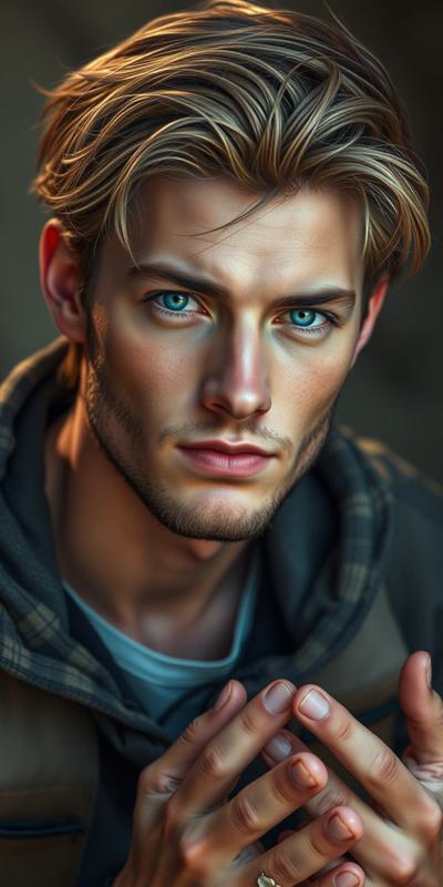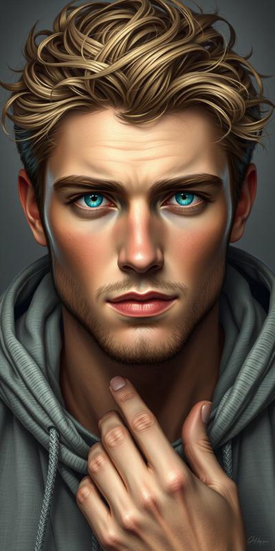 Симпатичный парень двадцати пяти лет, бирюзовые глаза, светло-русые волосы. Добрый взгляд, сильные руки, без щетины