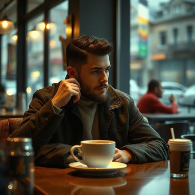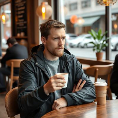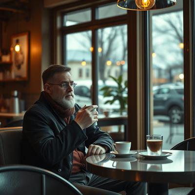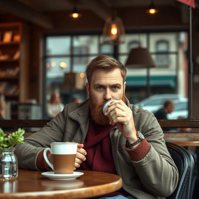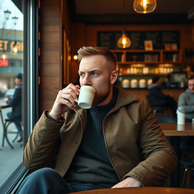 Башкирская Куница сидит и пьет кофе в кофейне