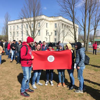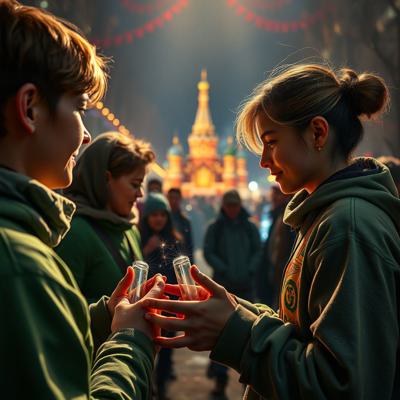 Audi А4 коричневого цвета едет по Москве, за рулем бурый медведь в солнцезащитных очках-авиаторах, вид-5 метров перед машиной, слегка повернуто на водителя [Вариации (0.2) для #6016164 ]