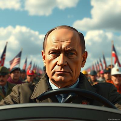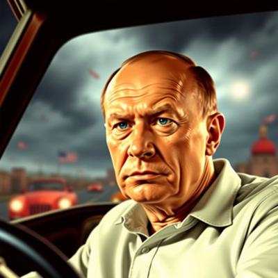 Создай изображение как с экрана загрузки carmageddon 1, но с головой Владимира Ильича Ленина