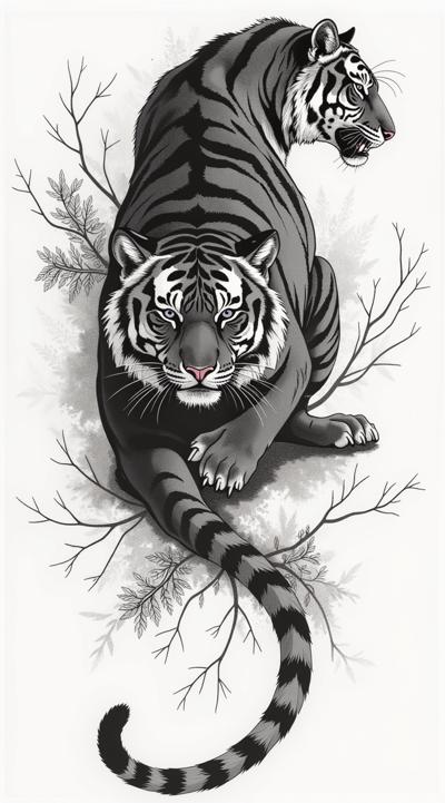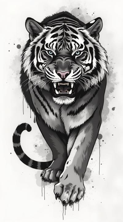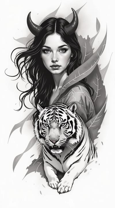 Эскиз тату с изображением тигра для девушки