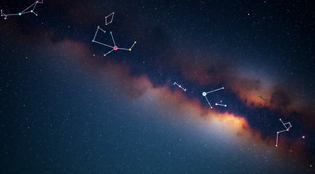 нарисуй красочные созвездия на небе изобразив в том числе животных из этих созвездий [Детализация для #5981530 ]
