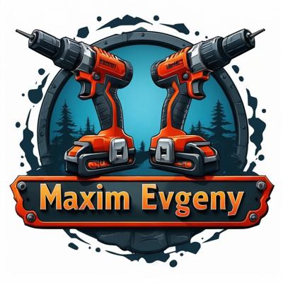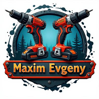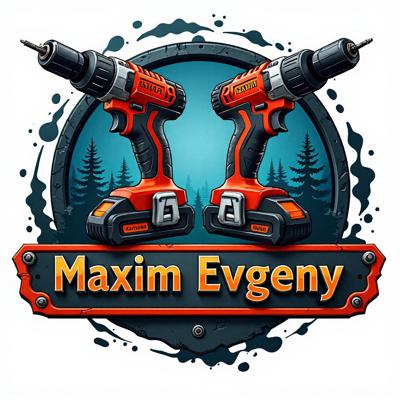 Нарисуй логотип для магазина электроинструмента и хозтоваров . Используй в названии завуалированно имена Максим И Евгений. Используй современную графику, яркие цвета,, электроинструмент [Вариации для #5971597 ]