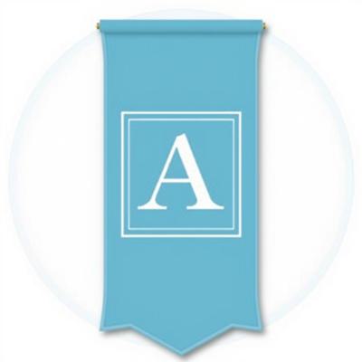 Вертикальное голубовато- синее знамя в центре квадрат и по середине большая буква А