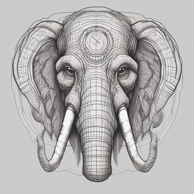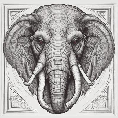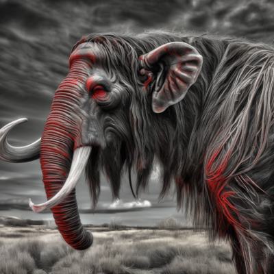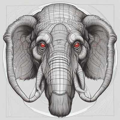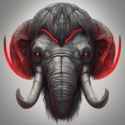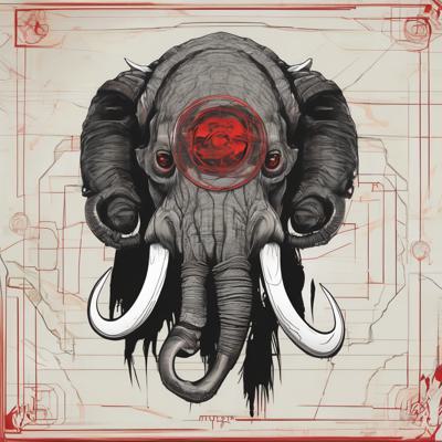 Голова мамонта, черными линиями, с красным прицелом на лбу