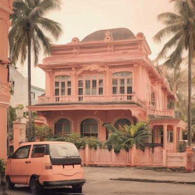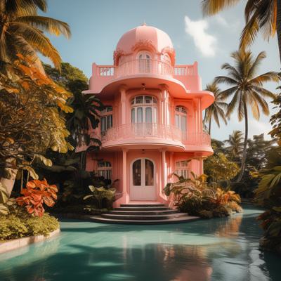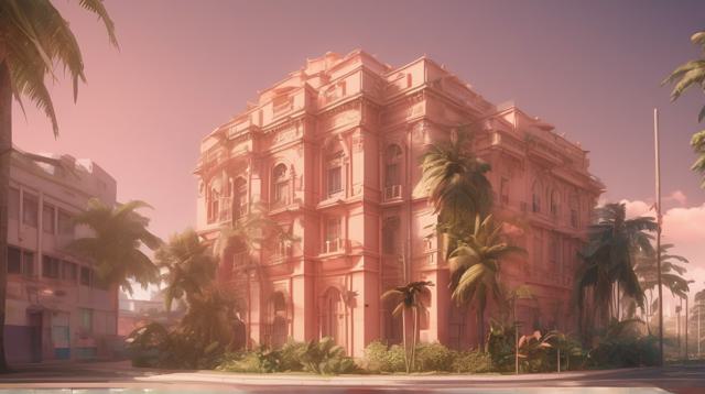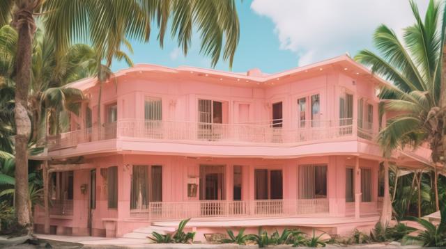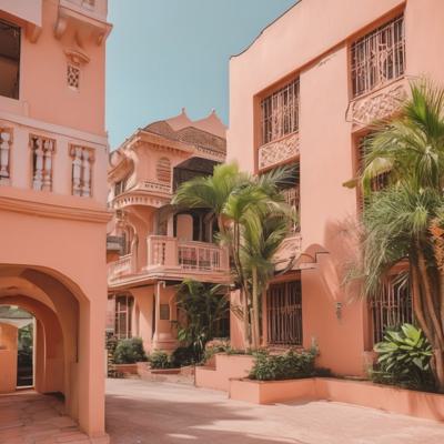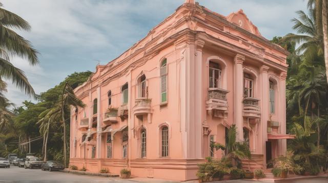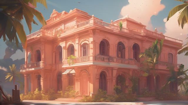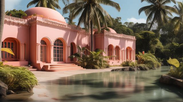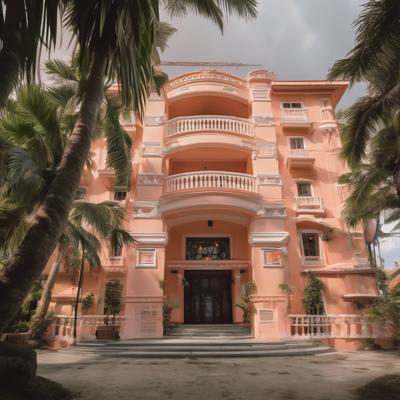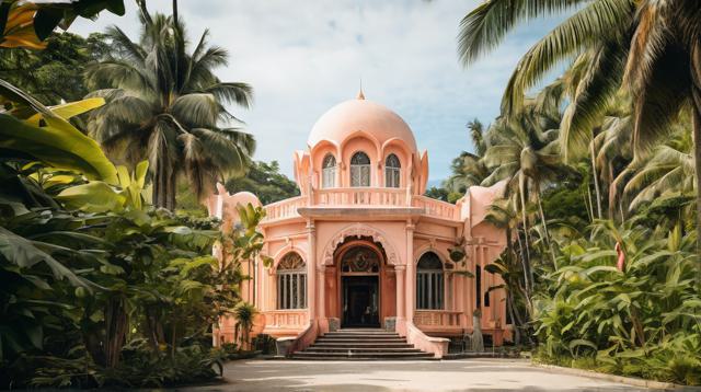 красивое здание в тропиках персикового цвета,