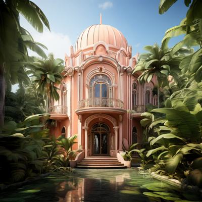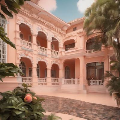 красивое здание в тропиках персикового цвета