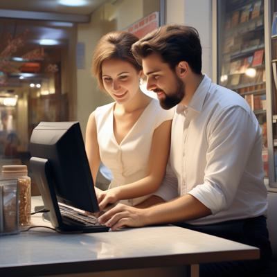 пара делает заказ на компьютере