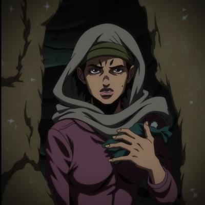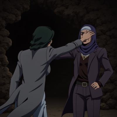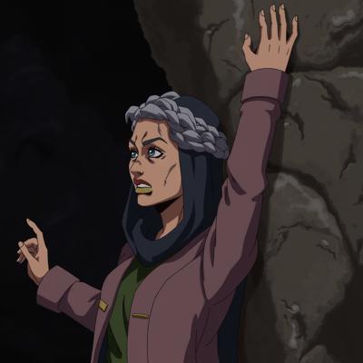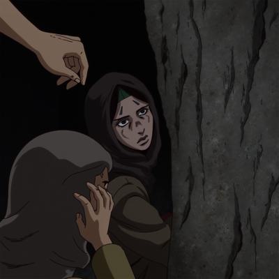 Рука вылезает из стены в пещере и хватает за плечо бабушку в хиджабе